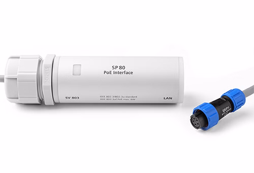 The SP 80 is a LAN interface with Power over Ethernet (PoE) tailored for the SV 803 Wireless Vibration Monitoring Station from SVANTEK, providing enhanced deployment capabilities and reliable power/network integration.