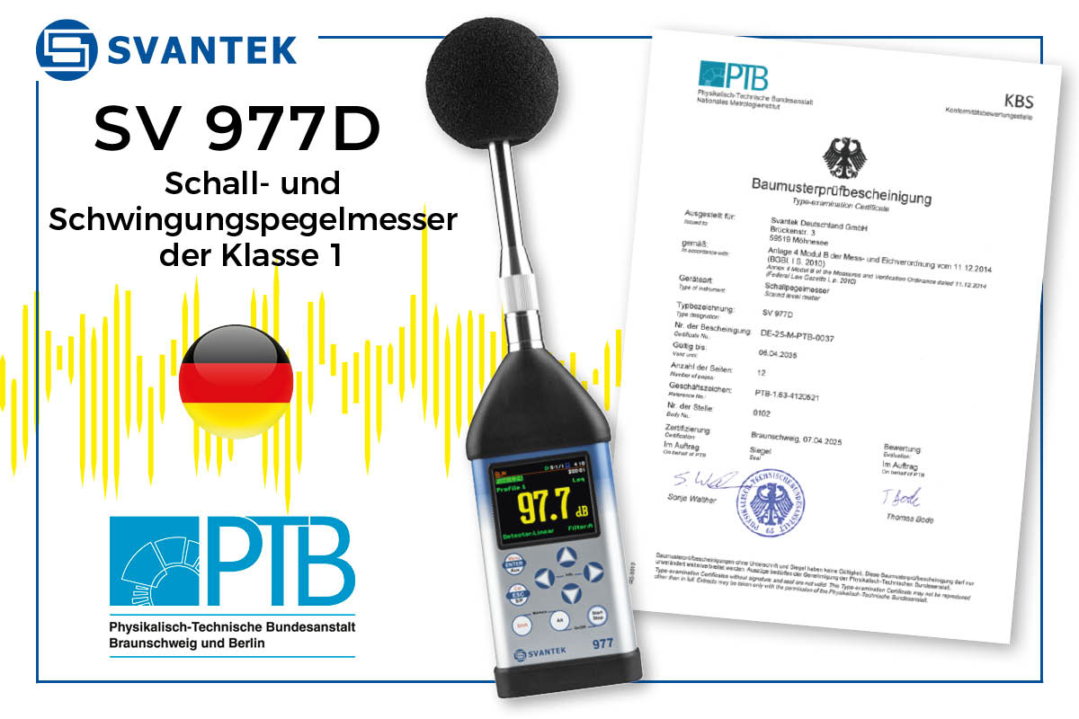 Für Akustikberater, Umweltbehörden, Fachkräfte im Gesundheits- und Arbeitsschutz sowie für Forscher bietet diese Zertifizierung die Gewissheit, dass der SV 977D auch für die anspruchsvollsten und streng regulierten Anwendungen bereit ist. Die PTB-Zulassung stärkt zudem den Ruf von SVANTEK als Anbieter hochwertiger und zuverlässiger Messtechnik.