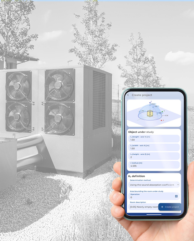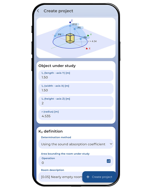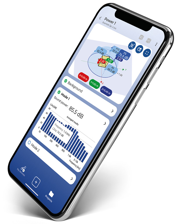 Survey method for sound power measurements in industrial buildings or open spaces, this method determines sound power levels where higher precision is not feasible. It utilizes hemispherical surfaces for open areas and parallelepiped surfaces for environments with adverse acoustic conditions. This versatile app supports the testing of diverse machinery, from handheld chainsaws to heavy excavators.