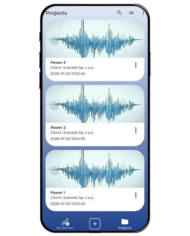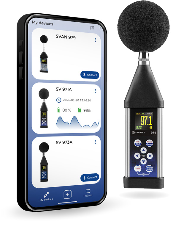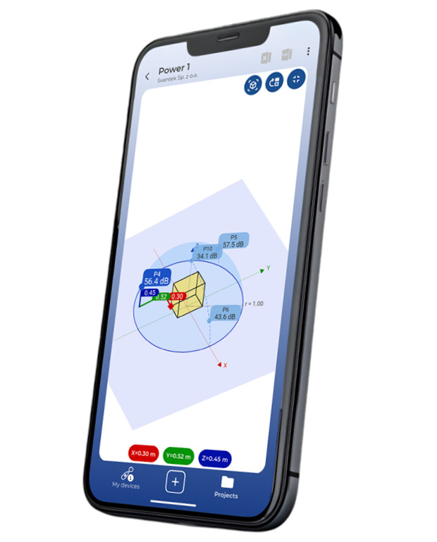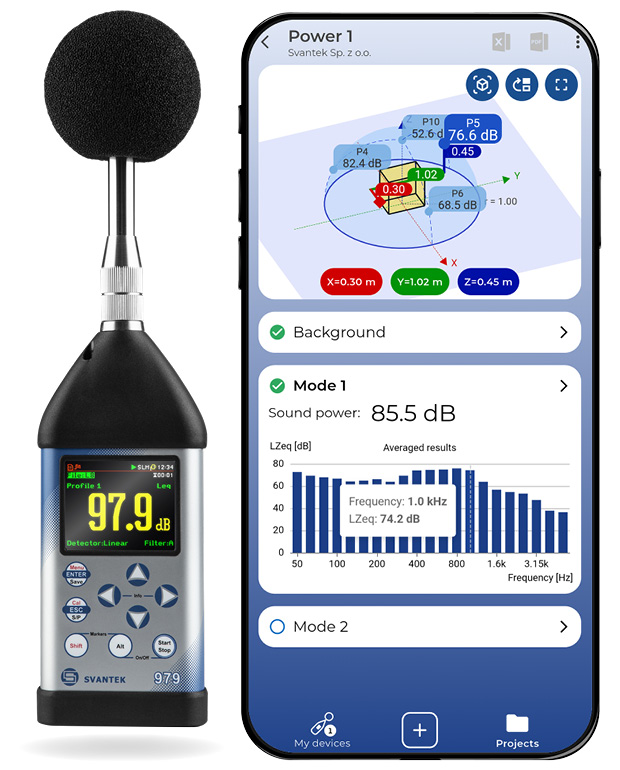 The mobile application simplifies the determination of sound power levels for outdoor equipment, following the survey method guidelines of ISO 3746 and Directive 2000/14/EC. Seamlessly connecting via Bluetooth to Svantek Class 1 and Class 2 instruments, it automatically applies background noise corrections and generates ISO-compliant reports. Additionally, this versatile application supports the testing of diverse machinery, from handheld chainsaws to heavy excavators. A project involving complex hemispherical or parallelepiped measurement surfaces is effortlessly configured during the measurement.